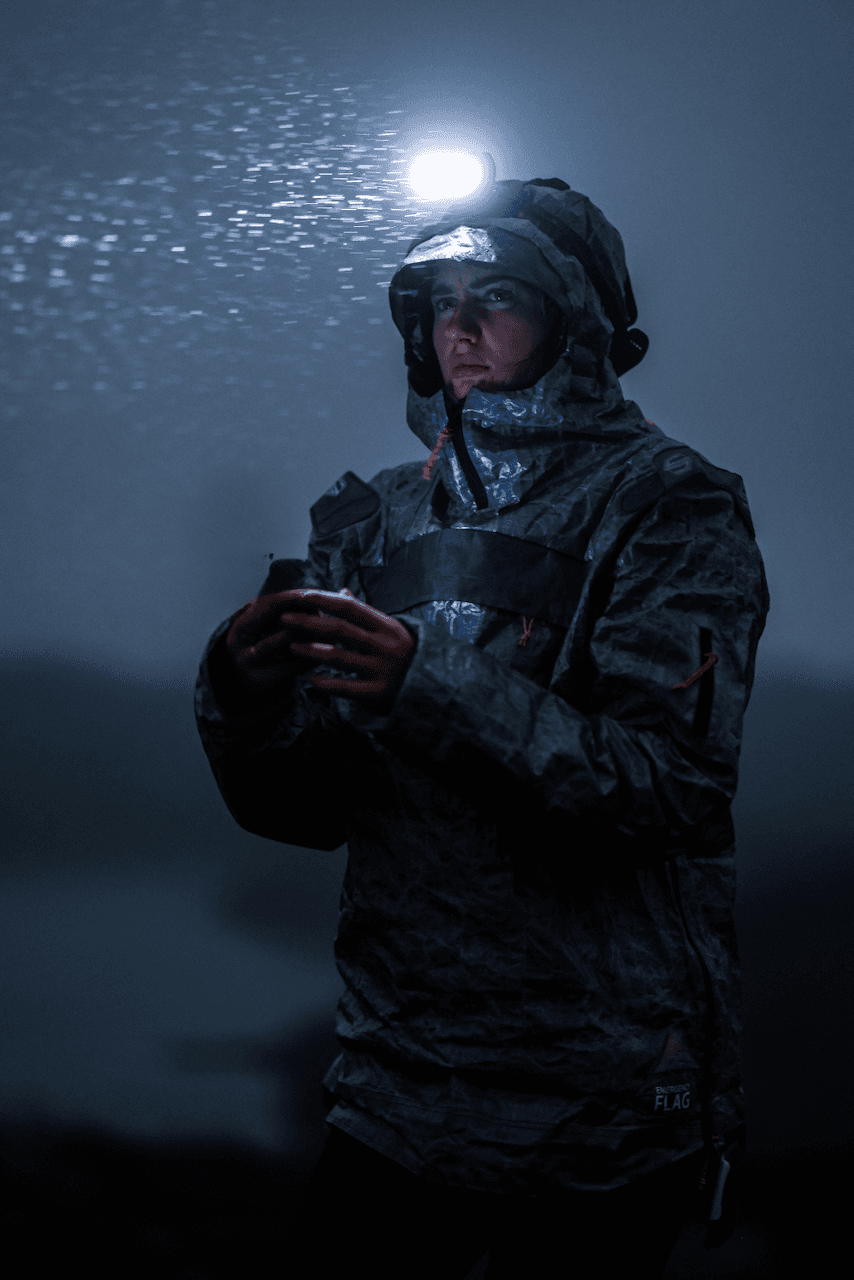 No jacket. No sleeping bag. No worries. Lun is a forever waterproof anorak and rescue kit in one — built to be worn, carried, or crawled into. Wear the rescue.