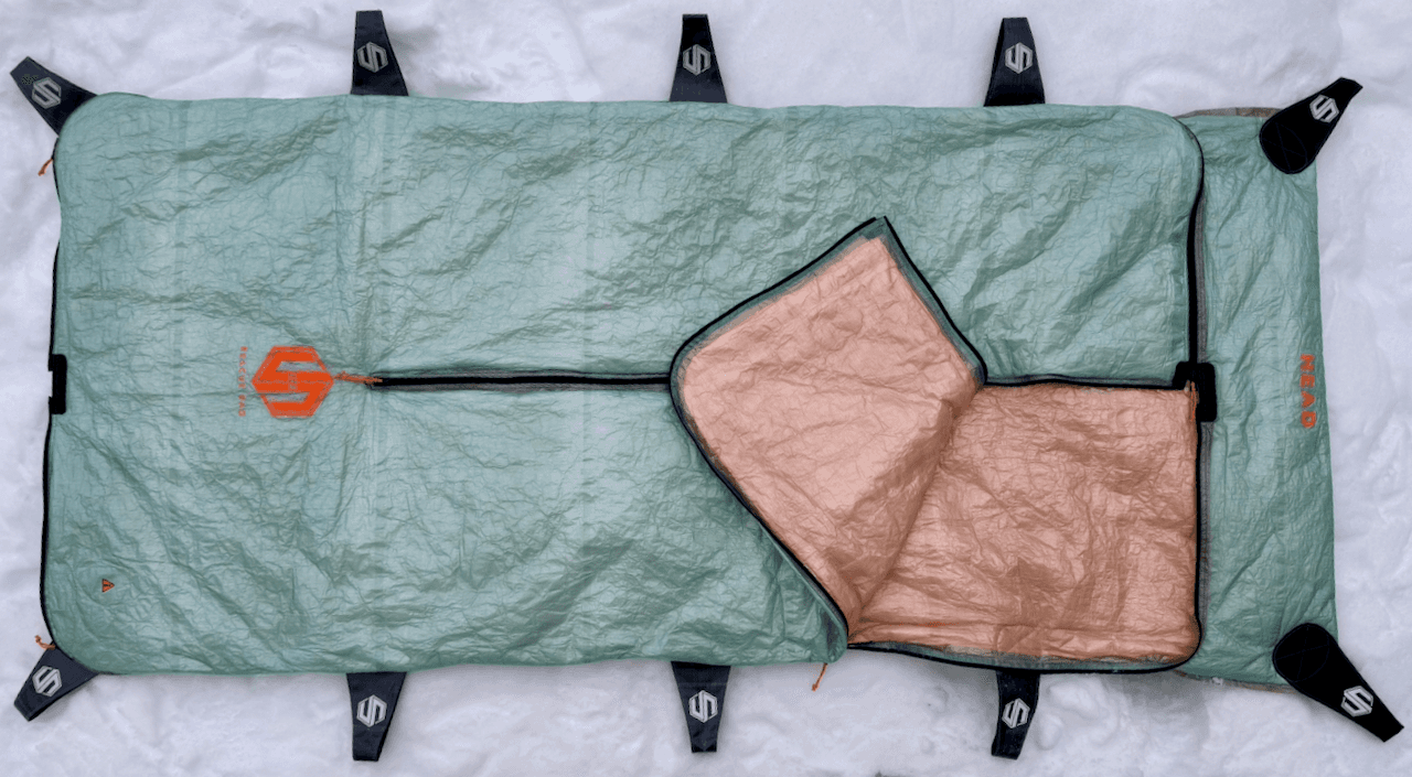 Berge Lite is a lightweight rescue bag offering wind and weather protection with full medical access. Built with Dyneema®, it is compact, durable and suited for situations where insulation is prioritized down for weight and packability.